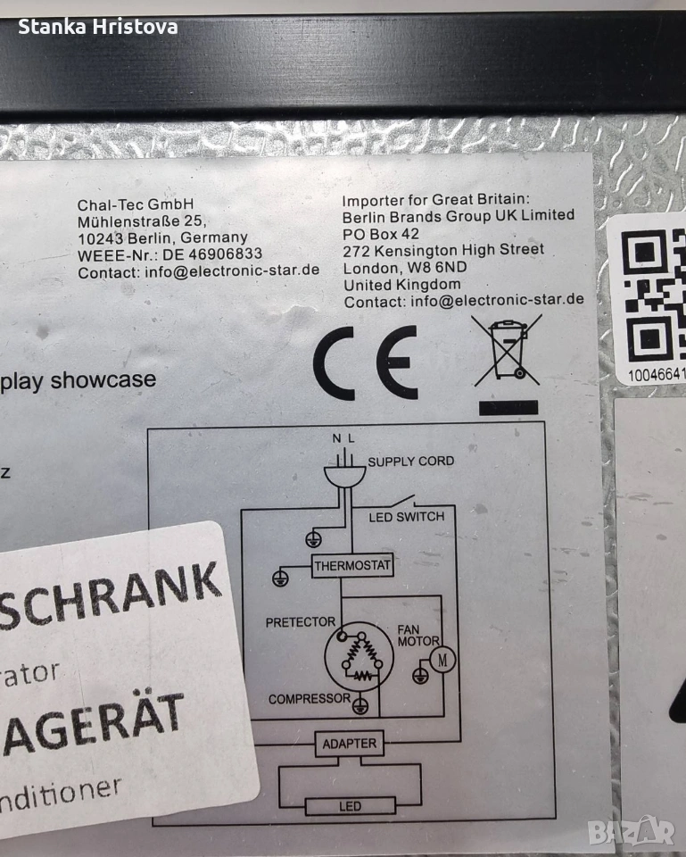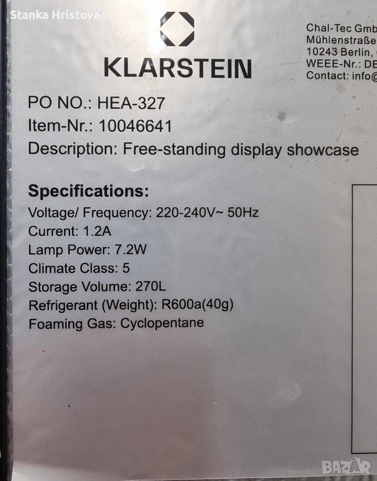 Продавам Работеща Чисто нова Вертикална хладилна витрина Klastein 270L. Много стилна , висок клас НЕМСКА марка. Има си колелца, които я правят леко подвижна. Внос от Германия.