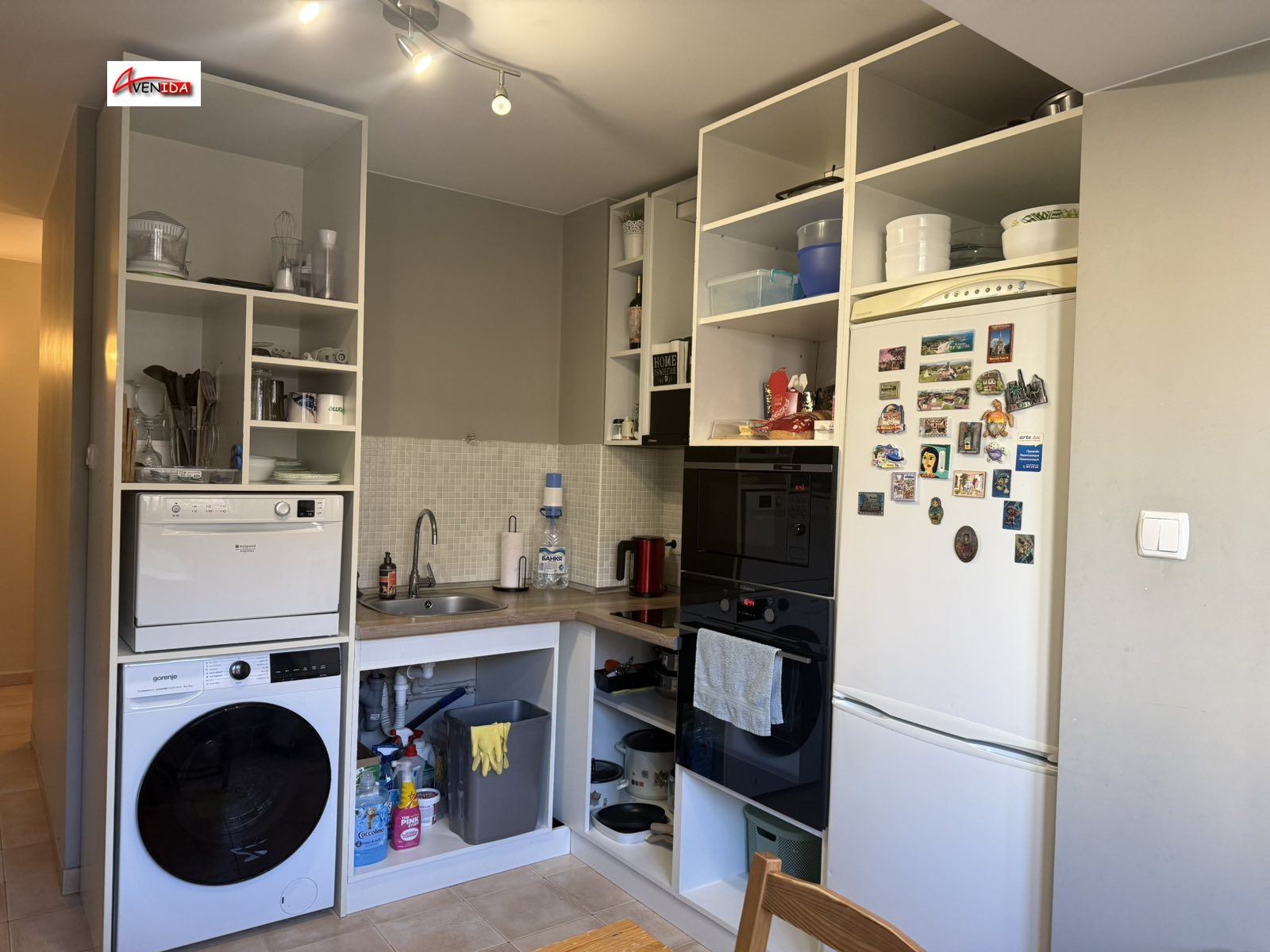Обслужващи помещения: Антре, функционален килер-гардеробна за максимално организиране на пространството и баня с тоалетна, оборудвана с висок клас компактен проточен бойлер за неограничено количество топла вода.