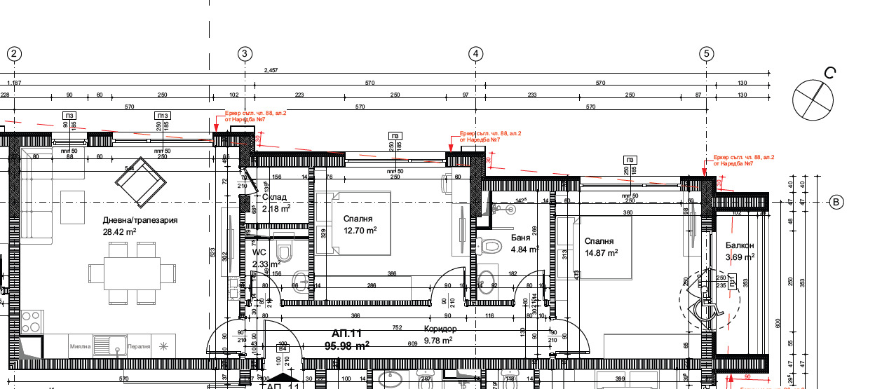Функционално разпределение, включващо просторна дневна с място за кухненски бокс и трапезария, родителска спалня, детска, тоалетна, баня с тоалетна и практично складово помещение.