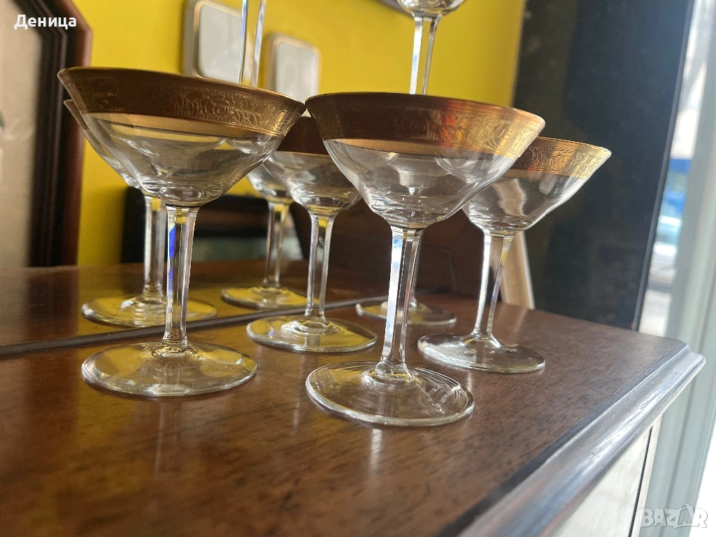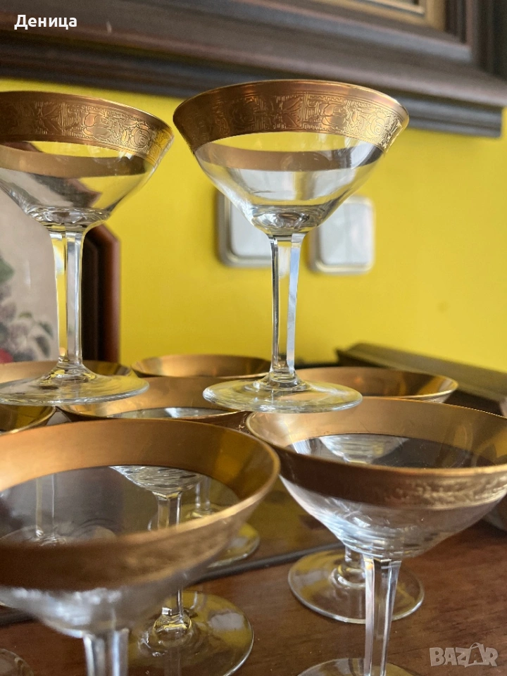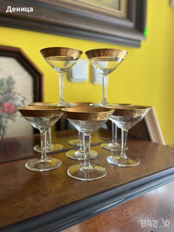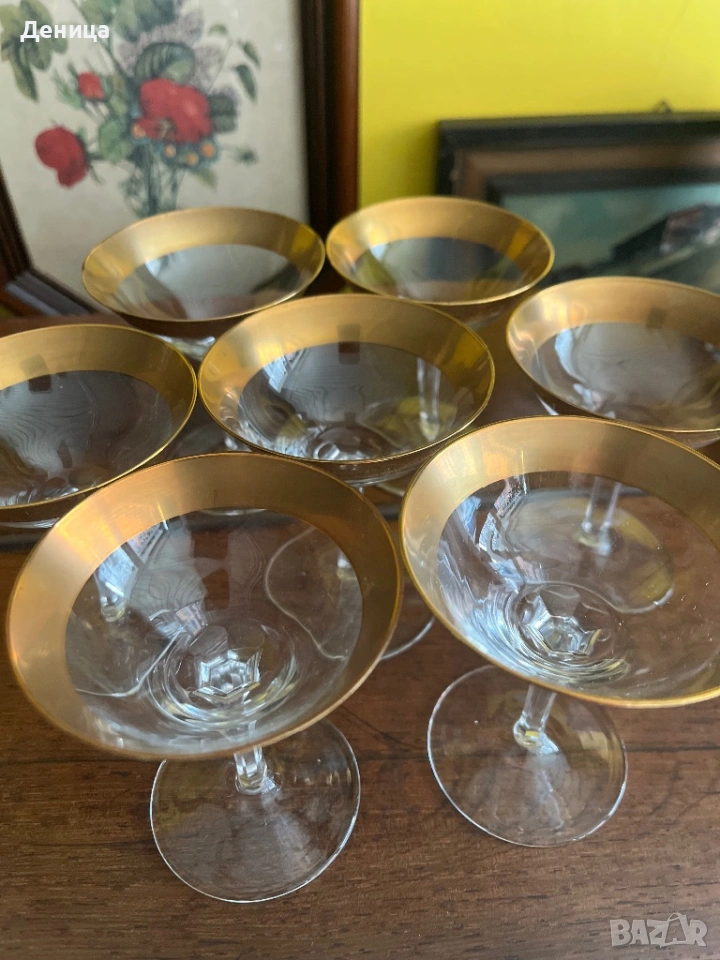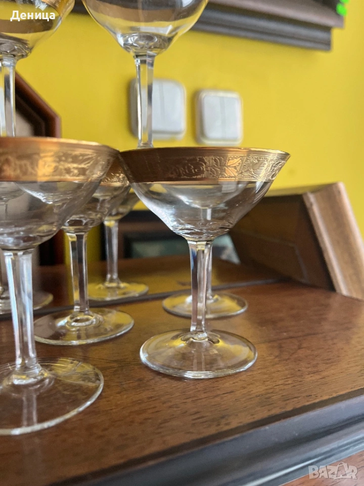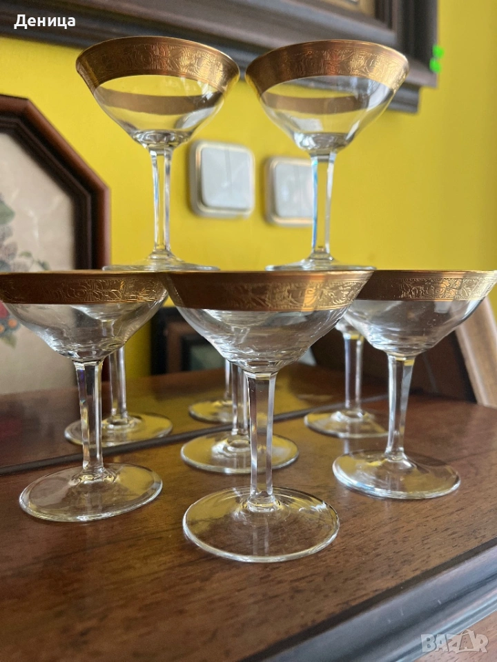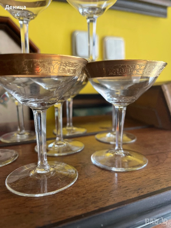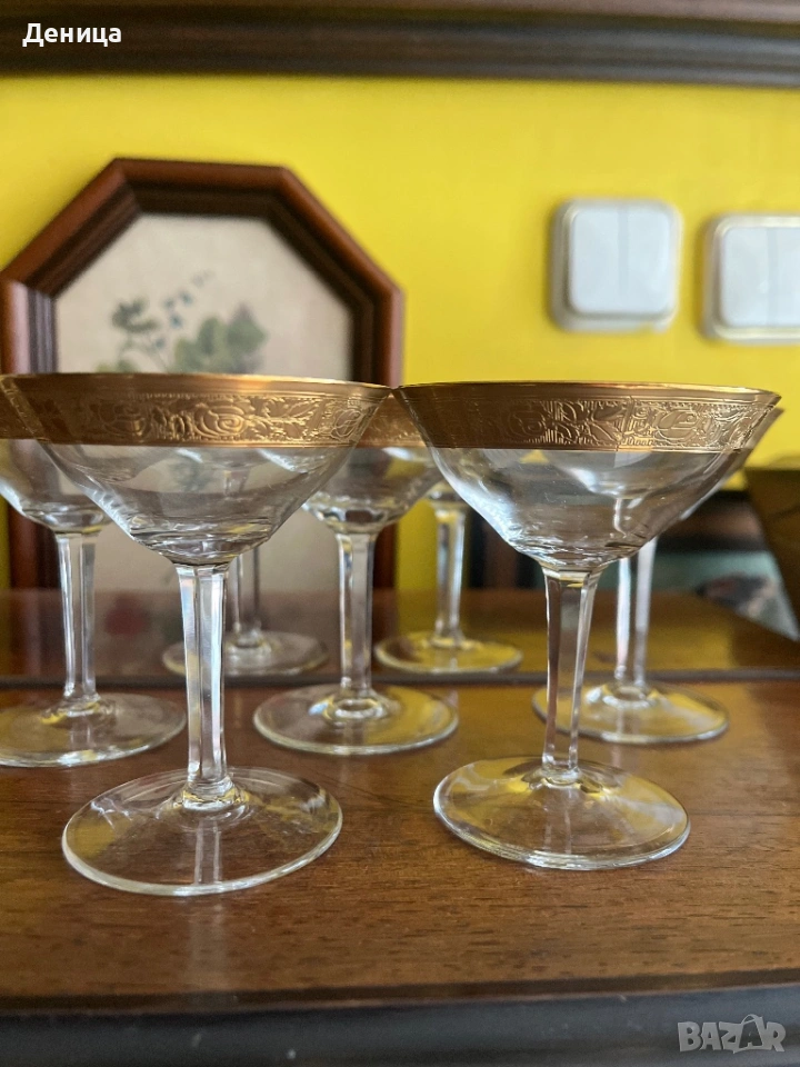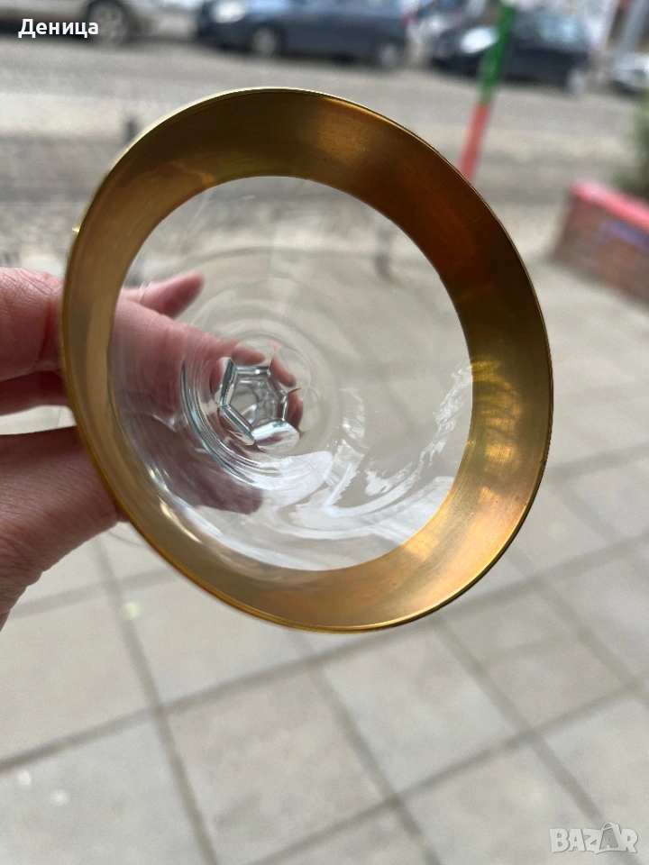 Обожавам ги 🥰 Бонбонски кристални чаши с любима форма и широк,гравиран златен кант и във вътрешност → Обява 53742606