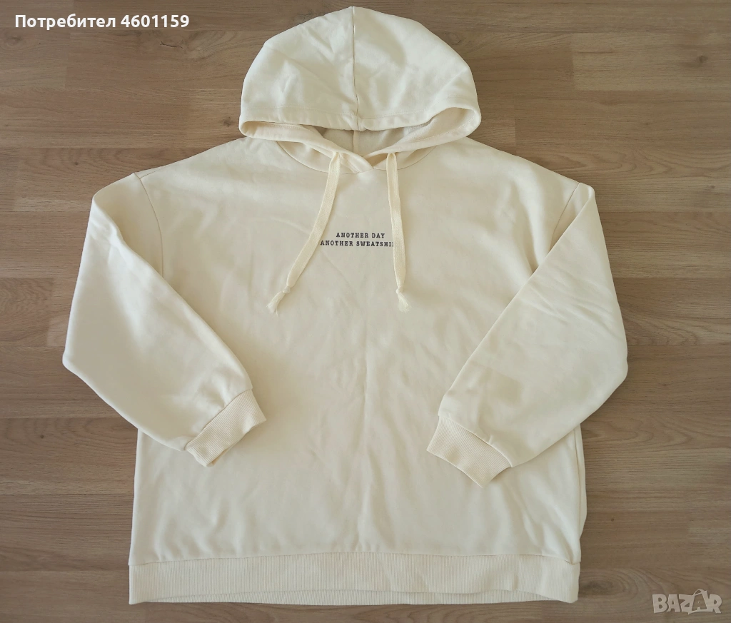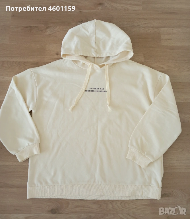 Комплект дамски дънки и суитчър в бял цвят.Качествена и мека материя от памук. Дънките са модел с марка Мars на Wallkiki, с леко ниска талия, размер 34/44.Суитчър с качулка и надпис, размер L/XL.В отлично състояние, кратко използвани, чисти