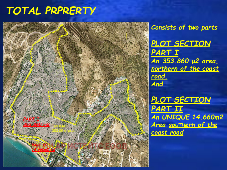 Ексклузивен парцел с площ 14 660 кв.м на първа линия до морето.