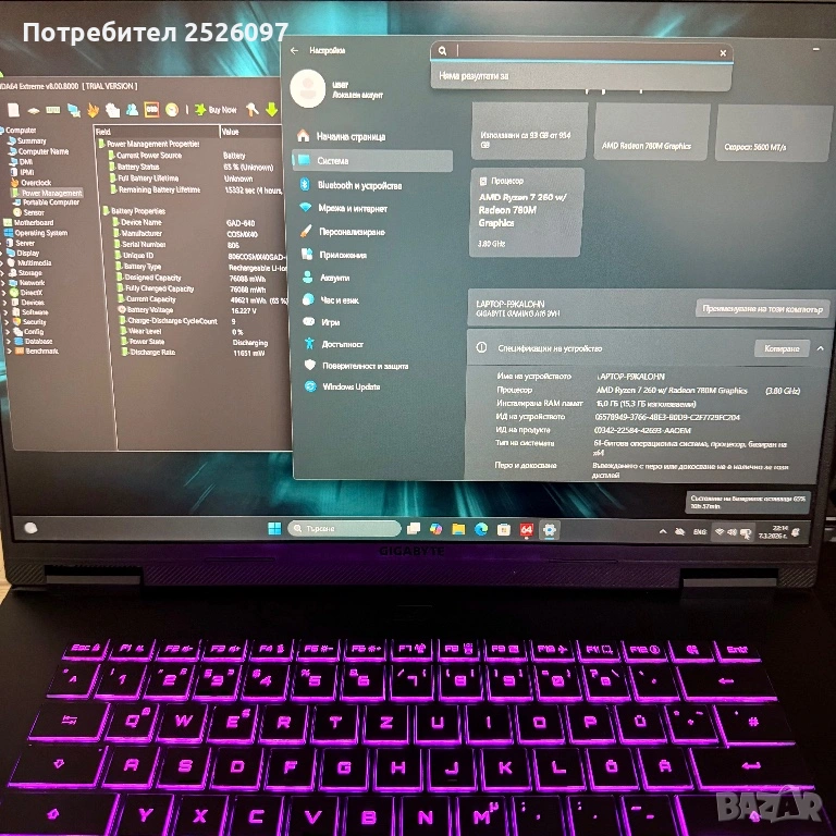 Gigabyte A16/WUXGA 165Hz/Ryzen 7 260/RTX 5060 8GB/16GB 5600Mhz/1TB/RGB → Обява 53742943