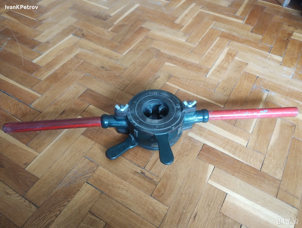 Водопроводен винторез за железни тръби до 2 цола. Произведен в Чехословакия. Използва се за направа на тръбни резби с прецизна настройка. Качествен и практически вечен инструмент.
