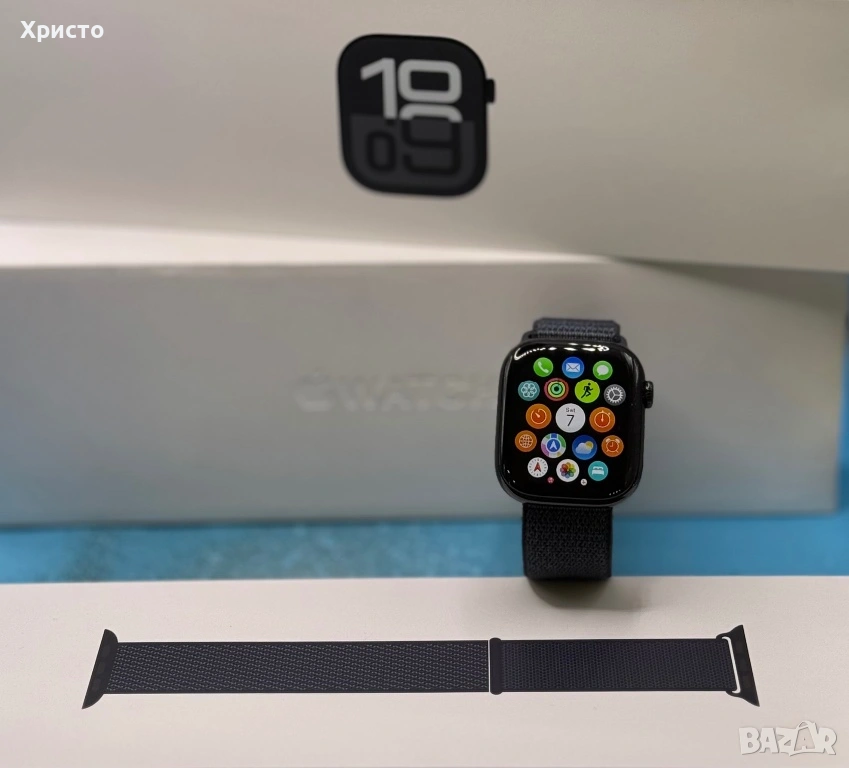 ГАРАНЦИОНЕН!!! Apple Watch 10 GPS, Jet Black Aluminum case 42 мм, Ink Sport Loop