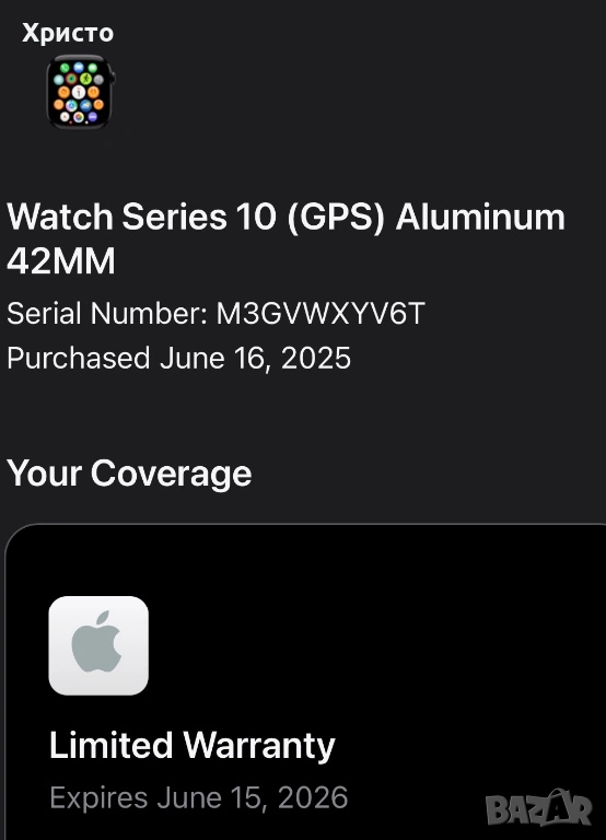 Часовникът е в перфектно състояние, неразличим от нов. Носен е много малко, като в повечето време е стоял без да се използва. Това ясно личи и от живота на батерията, който може да се види на една от снимките. Работи перфектно, както и всички негови функции. Няма никакви проблеми, дефекти или забележки. Закупен е от чужбина през Юни 2025 година и има остатъчна гаранция до Юни 2026 година. Моделът е много удобен както за ежедневна употреба, така и за спорт и следене на активност – сърдечен ритъм, сън, крачки, известия от телефона, спортни режими и много други функции. Без бартери!!!