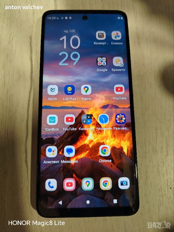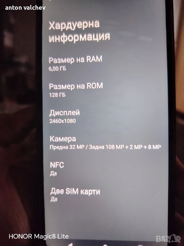 Запазен, със силиконов протектор на дисплея. Металната пластина е за магнитна стойка в кола, може да се отстрани при желание. Характеристики се виждат в една от снимките. Много бърза работа, става за игри без проблем, с много добра батерия.В комплекта има кутия и зарядно. Пращам с куриер, опция преглед и тест.