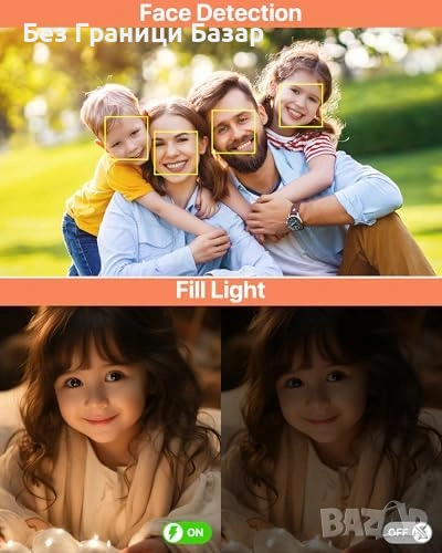 Вградена светкавица + допълнителна светлина за снимки при слаба осветеност