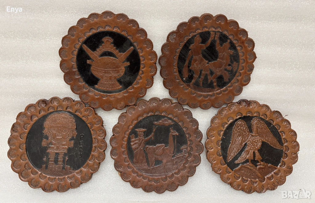 Кожени подложки за чаши от Перу - 5 бр. - за колекционери → Обява 53743717