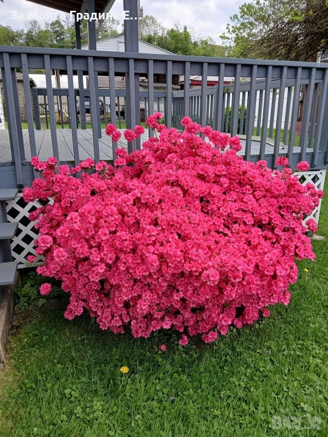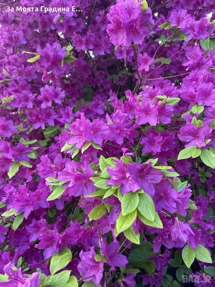 Азалия – градинска Цветове – Лилава , бяла и розова Размер-20-25см туфа Цена за 1 саксия 12€ Градинската азалия е декоративен цъфтящ храст с изключително ефектен и обилен пролетен цъфтеж. Цветовете са едри и нежни, в богата цветова гама – бяло, розово, червено, лилаво и оранжево, които превръщат градината в истински акцент през сезона. Растението е подходящо за засаждане в дворове, паркове и цветни композиции, както и като единичен декоративен храст. Предпочита полусянка или защитено слънчево място и се развива най-добре в кисела, добре дренирана и богата на хумус почва. Градинската азалия е студоустойчива и сравнително лесна за отглеждане при правилни условия. Характеристики: Тип растение: декоративен цъфтящ храст Цъфтеж: април – май Изложение: полусянка / слънце Почва: кисела, рохкава, добре дренирана Студоустойчивост: добра Подходящ избор за любителите на красиви, дълготрайно цъфтящи градински растения. 🌸 Растенията са в контейнери, което позволява засаждането им да се извършва почти целогодишно. Много от растенията променят вида си през периодите на своята вегетация, но тук в сайта със снимки се представят в най-атрактивния им вид. Повечето снимки в сайта ни покзват как ще изглеждат растенията след определен период и положени необходимите грижи. #ЗаМоятаГрадинаЕоод