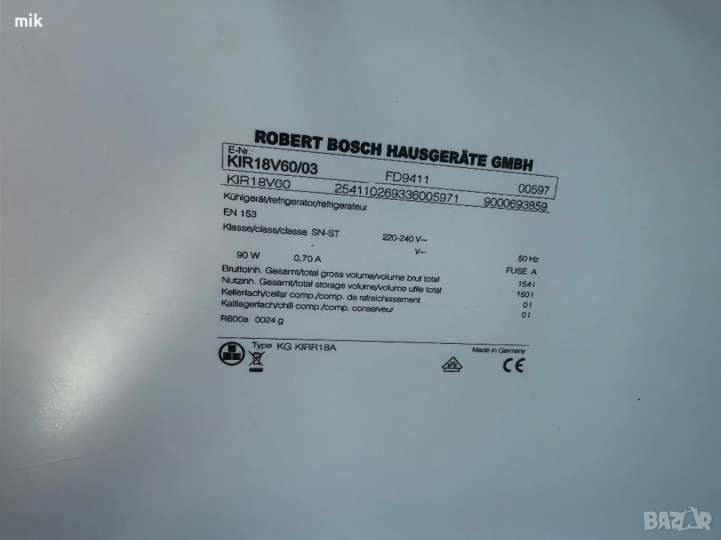 Малък хладилник за вграждане Бош. Размери 87/55/54д. Обем - 154 литра. Тих и икономичен компресор - 90W. Произведен В Германия. Оригинално оборудване. Антибактериално покритие. Перфектни уплътнения. Възможност за смяна посоката на отваряне на вратата.