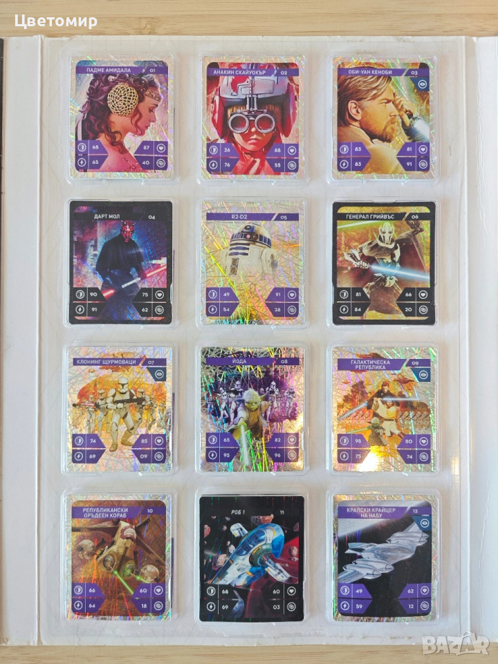 Star Wars колекционерски албум/ пълен комплект 48 обикновенни карти + 48 редки → Обява 53743988