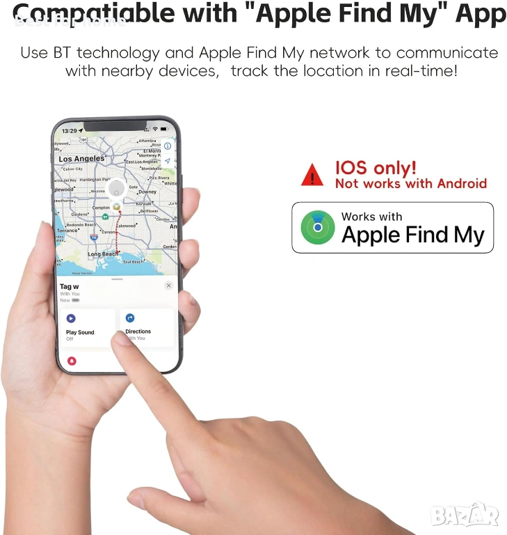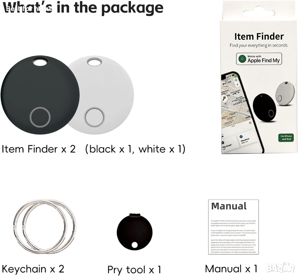 Етикети за проследяване, пакет от 2, интелигентно намиране на предмети, работи с Apple Find