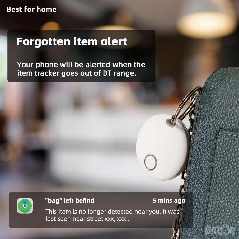 Известие за оставен предмет: Когато оставите ключа в офиса или чантата си някъде, намерете предмета, когато е извън обхват. Когато отворите „известието за оставен предмет“, ако етикетът изключи телефона ви, ще получите незабавно напомняне да го вземете.