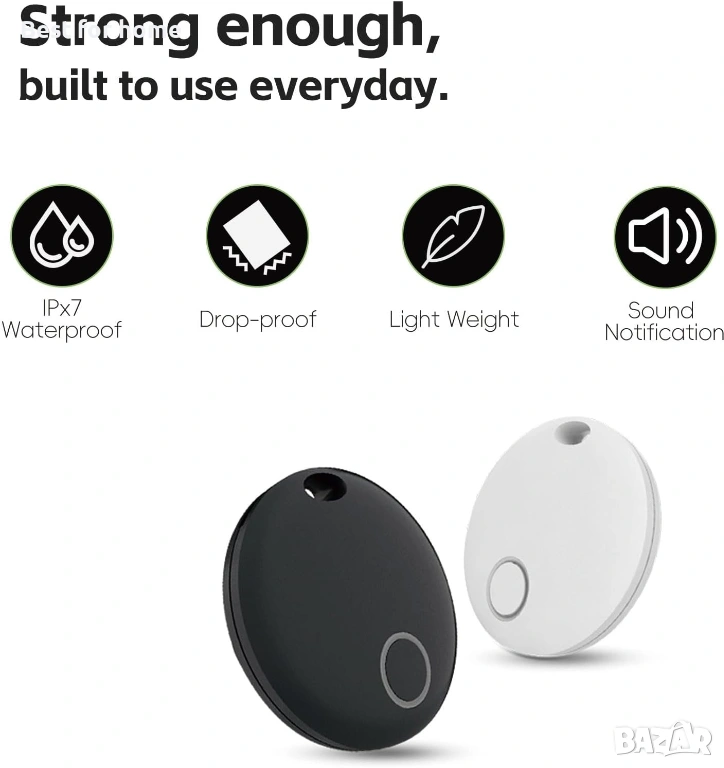 Водоустойчивост IP67 и дълготрайна батерия: Водоустойчивостта на търсача на ключове е до IP67, проектиран е за излагане на водни пръски и краткотрайно потапяне, батерията на този етикет издържа около 1 година, можете да разчитате, че устройството ще проследява вашите предмети без честа смяна на батерията.