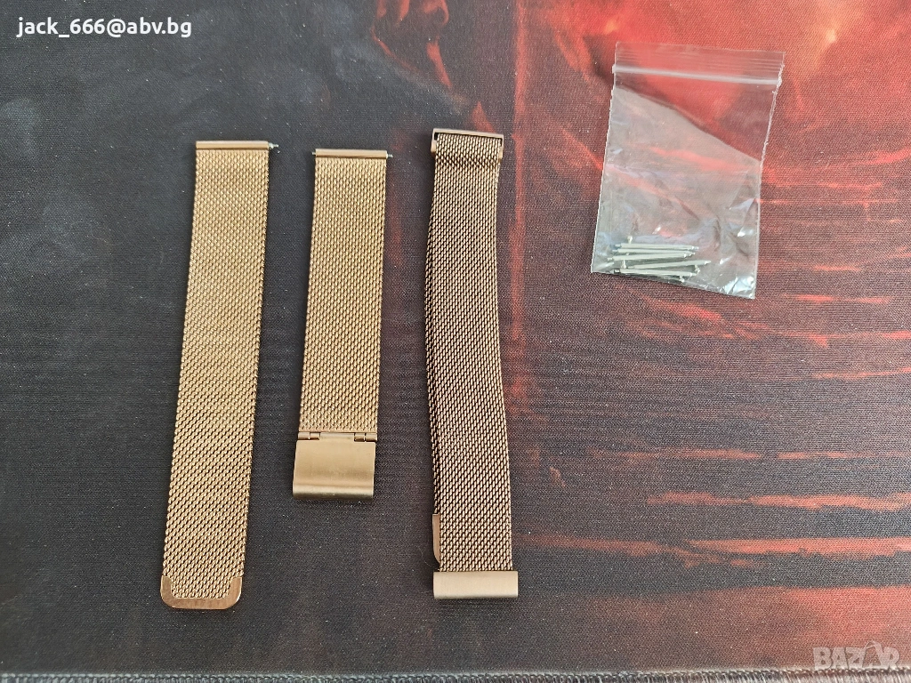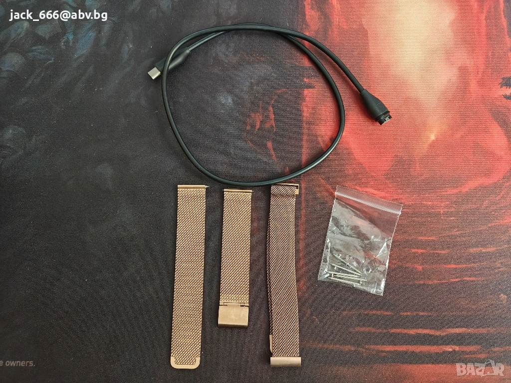 Часовника е с оригиналната си кутия, кабел и 2 допълнителни каишки.