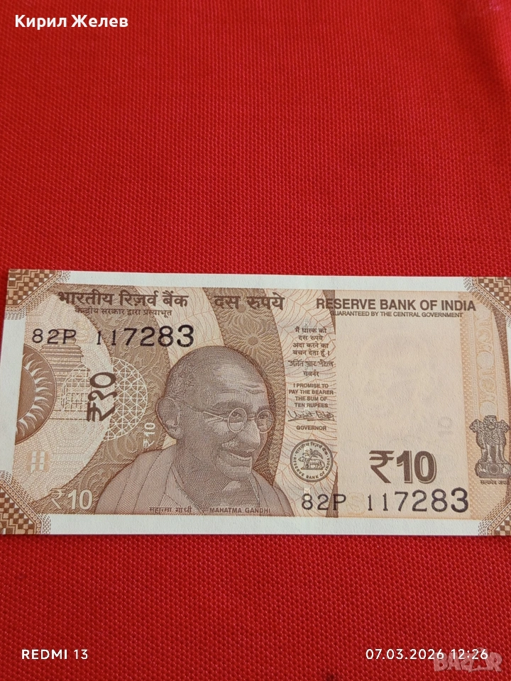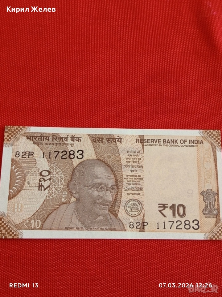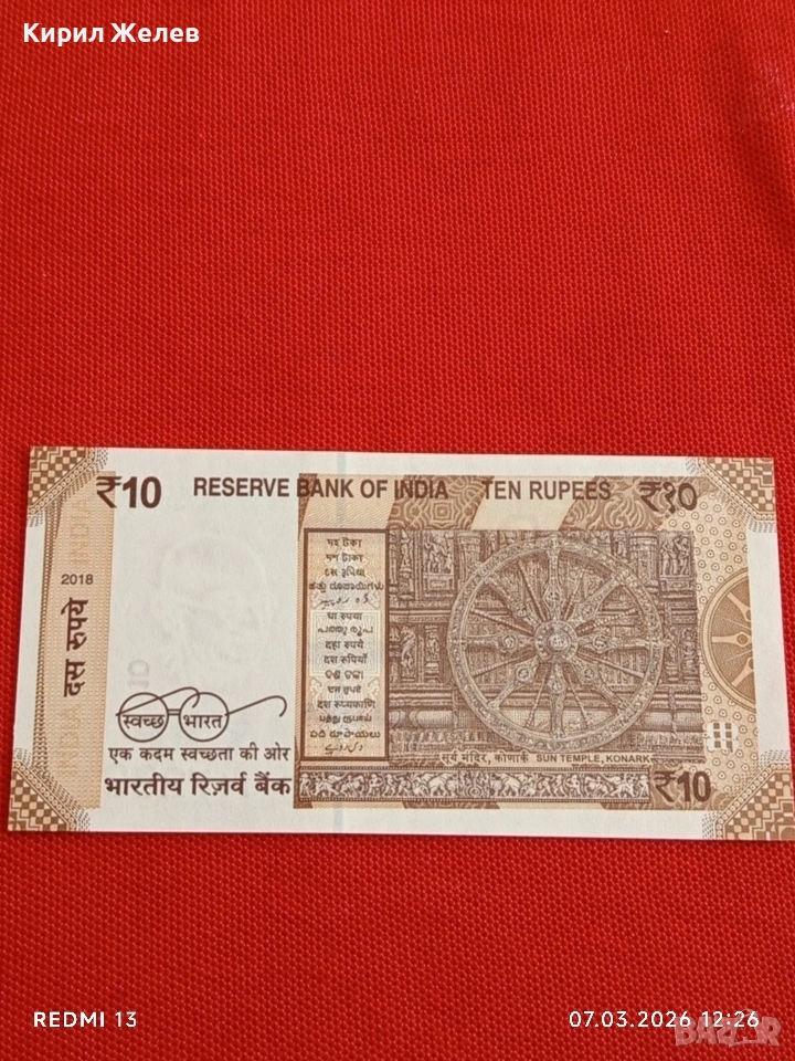 Банкнота ИНДИЯ много красива перфектно състояние непрегъвана за КОЛЕКЦИЯ ДЕКОРАЦИЯ 53905 → Обява 53744444