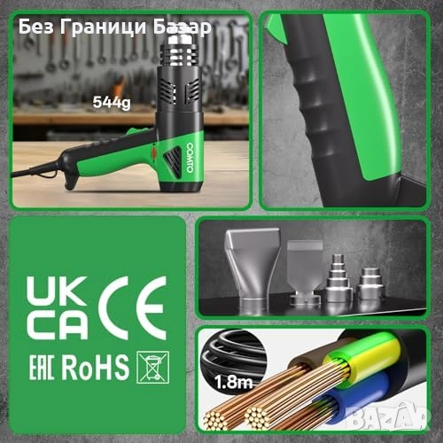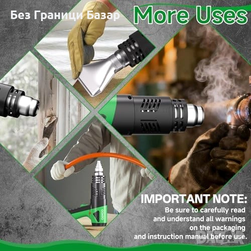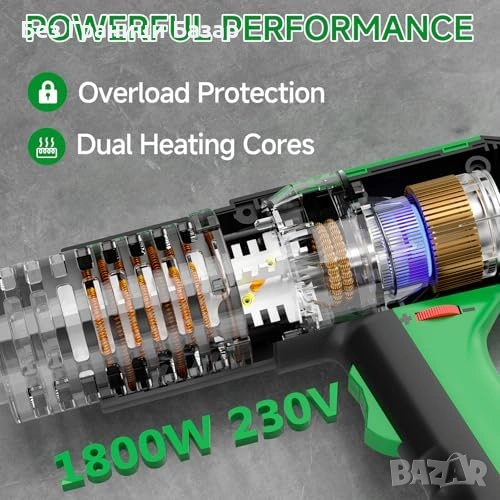 Нов Термопистолет 1800W 1.5s нагряване 50-650°C защита 4 накрайника