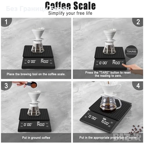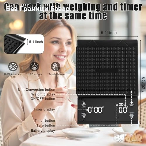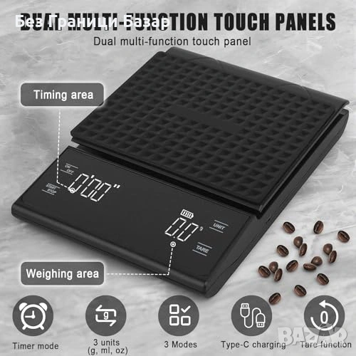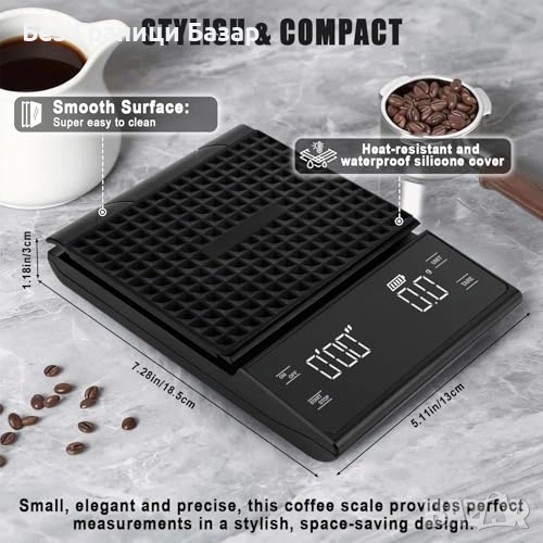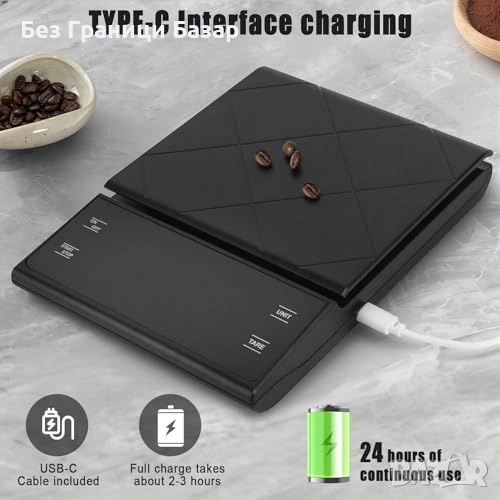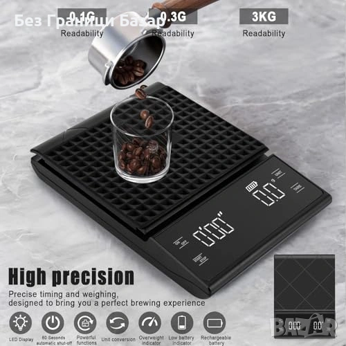 Нова Еспресо везна 0.1г точност 3кг таймер LED силиконова подложка кафе