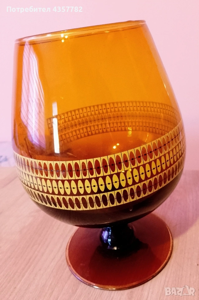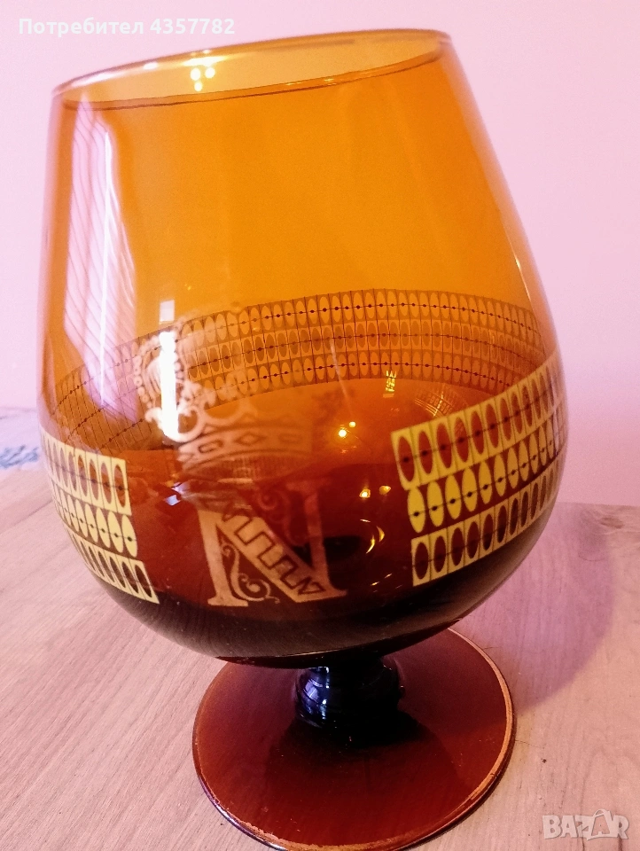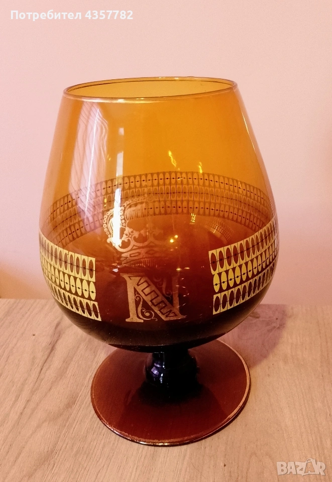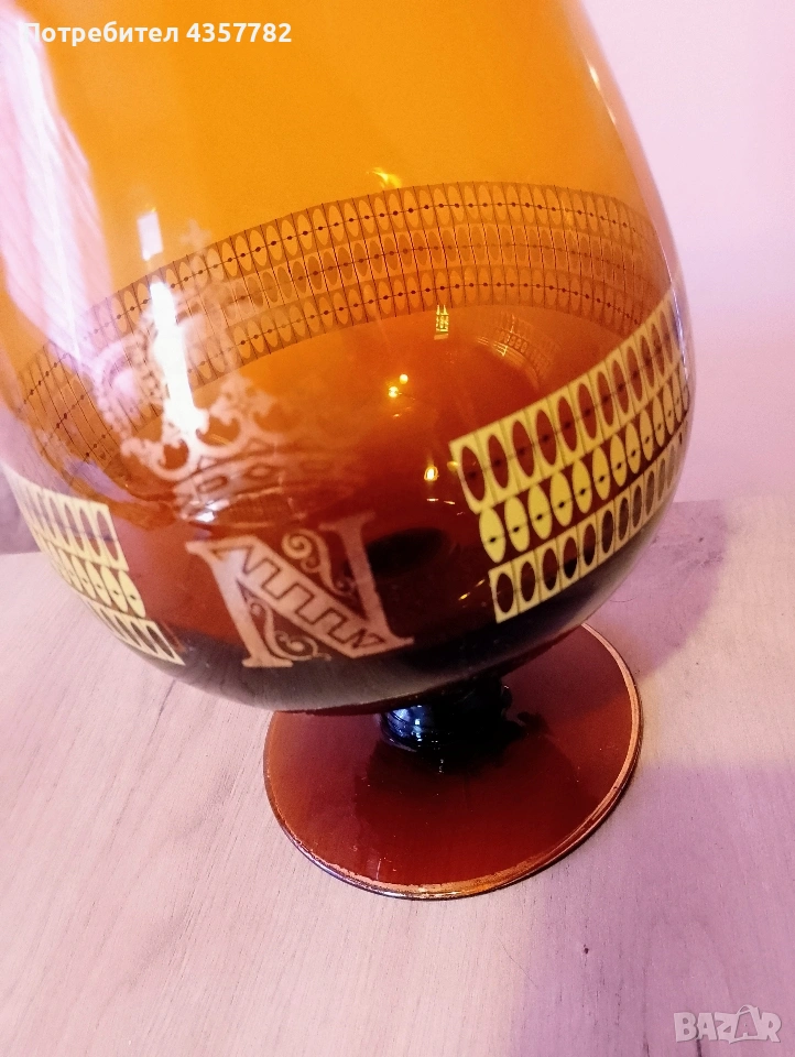Голяма колекционерска винтидж чаша ,, Наполеон ", от тежко кехлибарено стъкло със златен мотив.