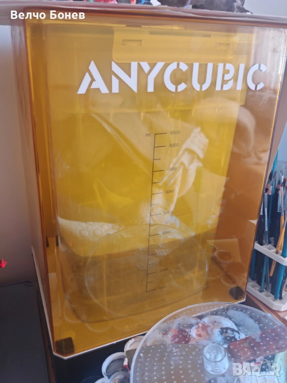•станция за почистване и UV втвърдяване Anycubic Wash and Cure Plus (заредена с около 3.5 литра изопропилов алкохол)