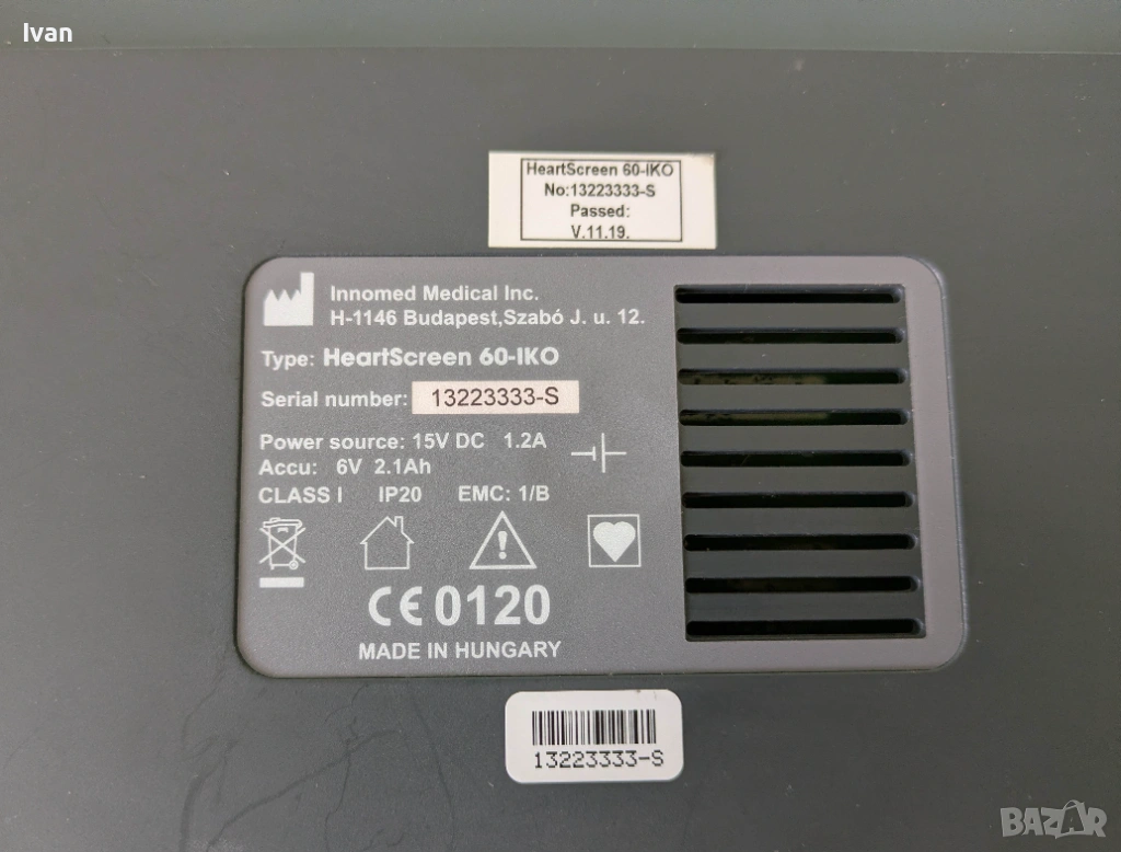 Продавам Innomed HeartScreen 60-IKO – 3-канален електрокардиограф с вграден термопринтер.