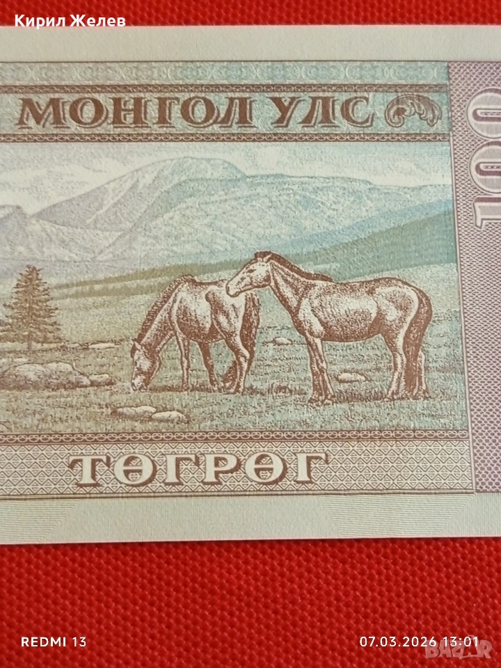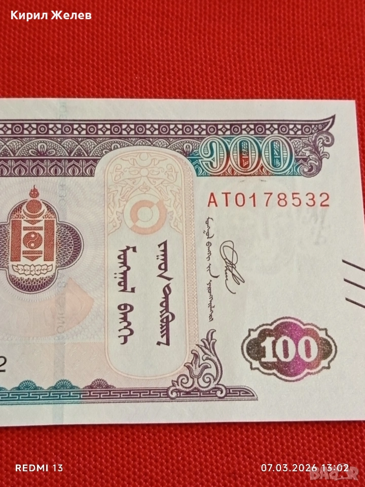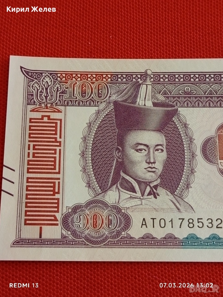 Банкнота МОНГОЛИЯ много красива перфектно състояние непрегъвана за КОЛЕКЦИЯ ДЕКОРАЦИЯ 53919 → Обява 53744759