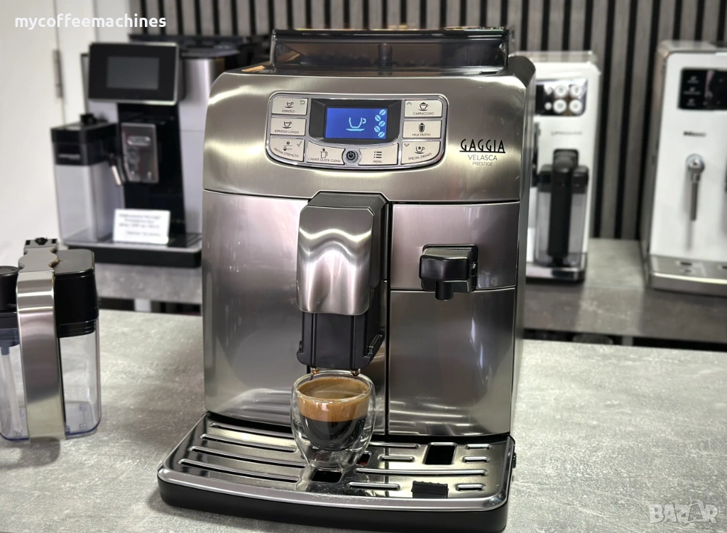 Кафемашина Gaggia Velasca Prestige е напълно автоматична машина, която съчетава италианско качество и модерен дизайн. С вградена керамична мелачка, функция за предварителна инфузия и автоматична млечна система, тя приготвя перфектно еспресо, капучино и лате с едно докосване. Идеалният избор за любителите на истинското кафе у дома.