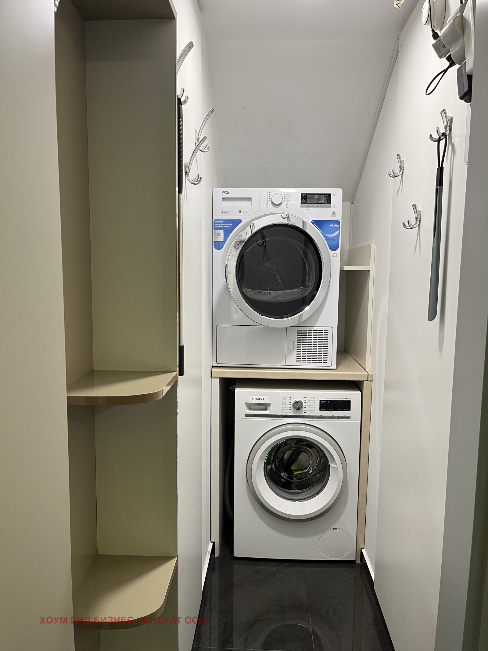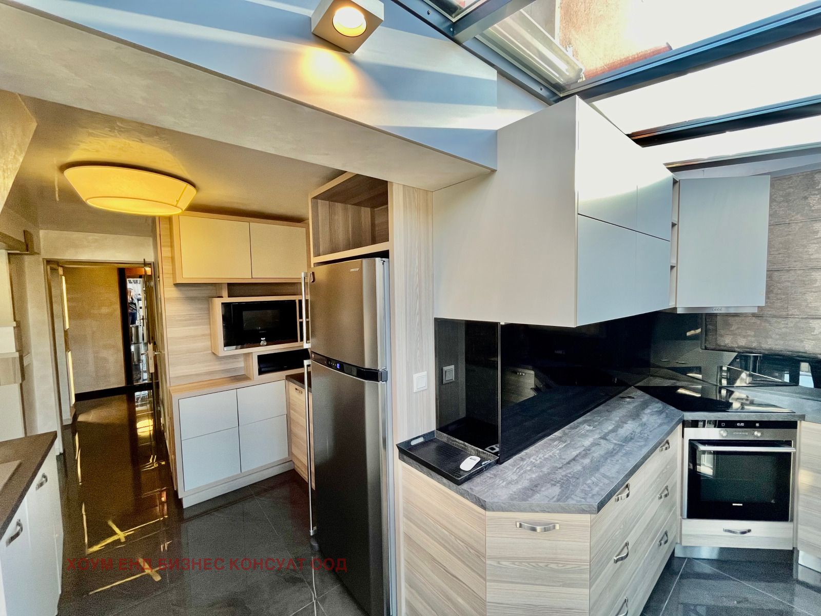 Жилището разполага с пълна гама бяла и черна техника висок клас, и мебели по поръчка. Всяко едно помещение разполага с климатик. Има поставени електронни външни ролетни щори.