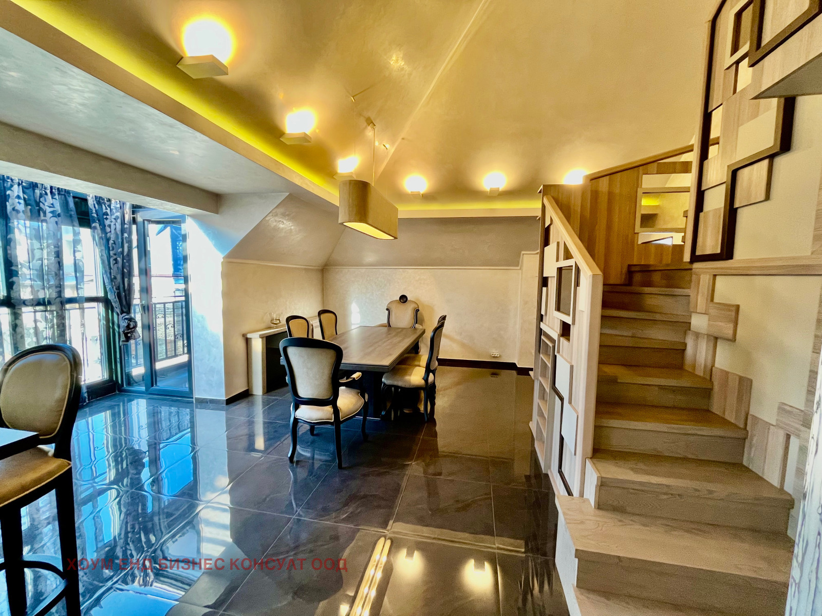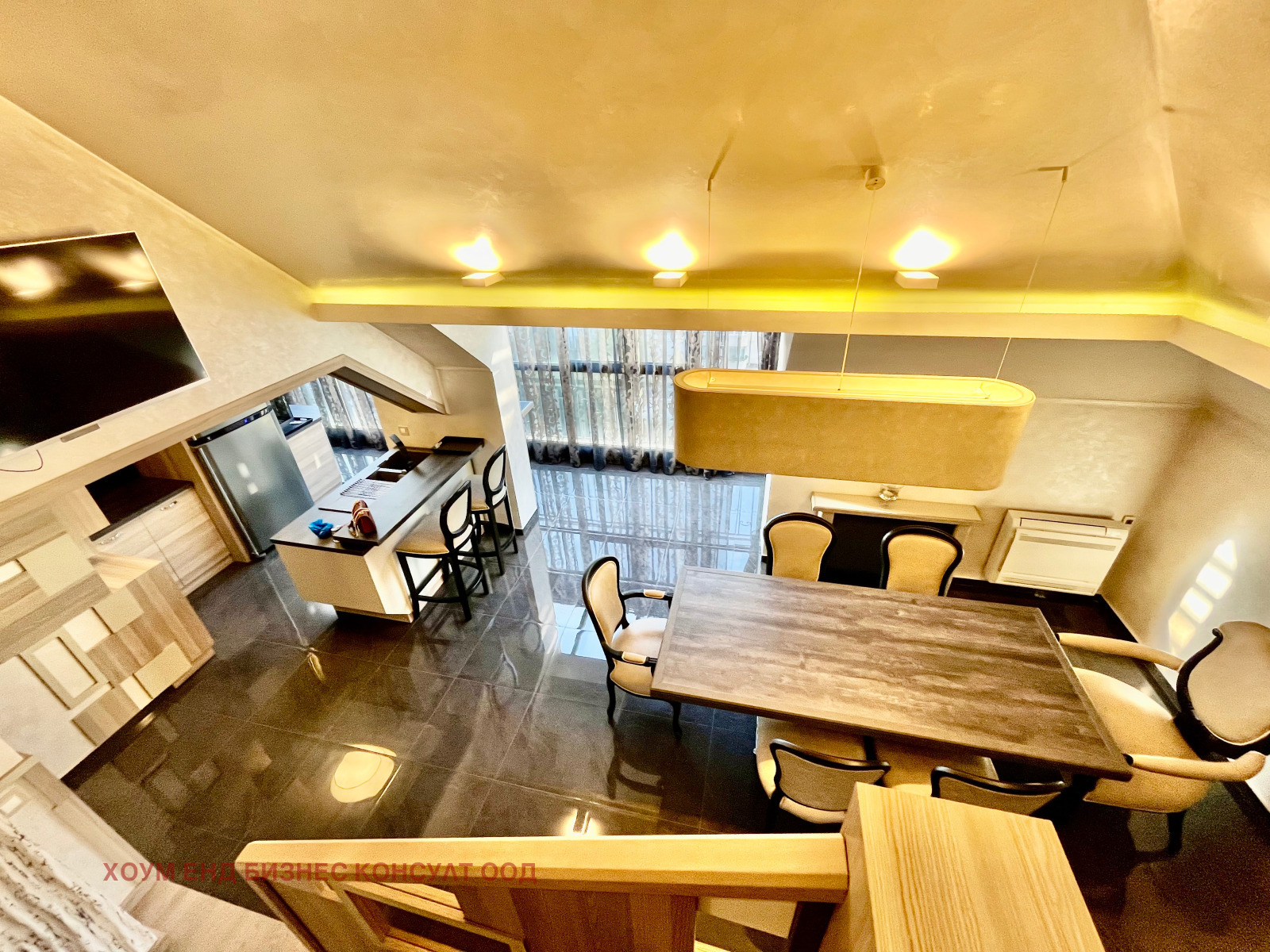 Предлагаме на Вашето внимание луксозно обзаведен мезонет с панорамни тераси в кв. Борово, ул. Солун. Жилището е ситуирано на ет.7 и ет.8, в сграда с контролиран достъп.