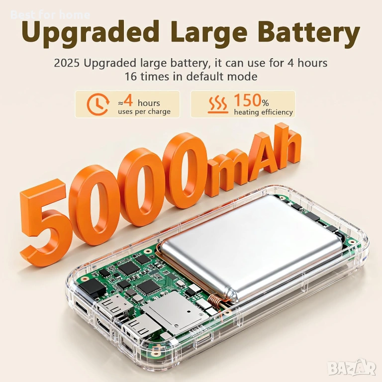 [5 настройки на таймера и батерия с висок капацитет 5000mAh]: Този масажор предлага 5 настройки на таймера. 10-15-20-25-30 мин, можете да изберете една по ваш избор. Поддържа батерия с висок капацитет 5000mAh и безжичен дизайн, можете да го използвате у дома, в офиса, на път за пътуване и по всяко време навсякъде, когато имате нужда.