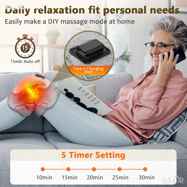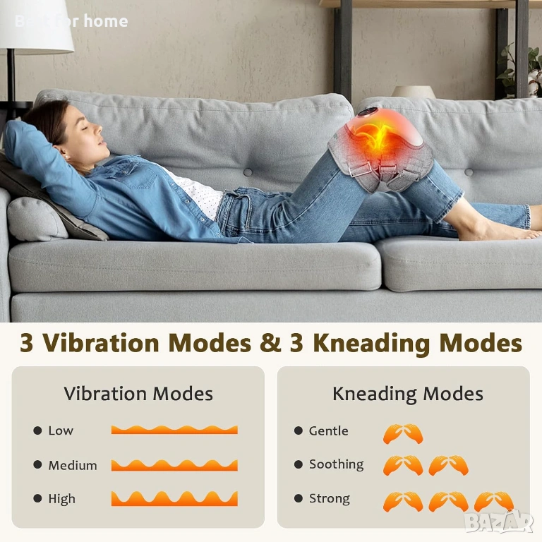 [Лесен за употреба и висококачествен материал]: Голям дигитален екран с тъчскрийн, лесен и удобен. Мекият EVA материал прави масажора по-подходящ за коляното, обгръщайки го на 360°, което ще ви накара да се чувствате по-комфортно.