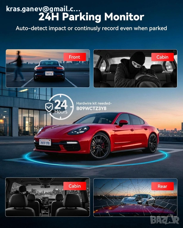 [Режим на паркиране и G-сензор] Видеорегистраторът REDTIGER F17Plus осигурява 24/7 наблюдение на паркирането (необходим е допълнителен кабел за намаляване на напрежението: B09WCTZ3Y8). G-сензорът задейства записа в случай на удар, за да запише и съхрани подозрителна активност или инциденти, обхващайки предния, вътрешния, задния и страничния изглед.