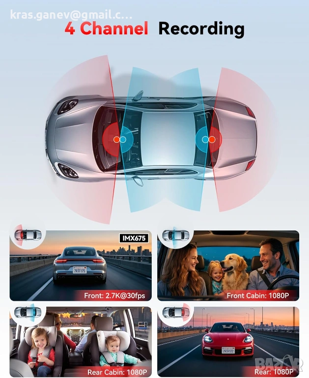 [4-канален 360° пълен обхват] Тази усъвършенствана REDTIGER F17Plus 4-канален преден и заден видеорегистратор разполага с 2.7K предна камера, 1080P предна камера в кабината, 1080P задна камера в кабината и 1080P заден обектив, осигурявайки по-широко покритие и 360° защита. Оборудван с четириканален STARVIS 2 чип, този видеорегистратор предлага наистина мощно изживяване. F17 Plus едновременно заснема предни и задни улични изгледи, всички събития в интериора и слепи зони, осигурявайки цялостно покритие и ясен запис на събитията. Избираемите режими 1CH/2CH/3CH/4CH позволяват персонализирано покритие на записа по всяко време