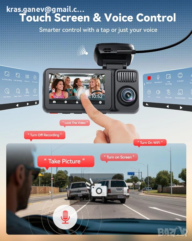 [Интелигентно гласово управление и сензорен екран] Управление на видеорегистратора без ръце с четири камери чрез многоезични гласови команди. Лесно преглеждайте снимки или регулирайте настройките чрез елегантния сензорен екран. С множество опции за управление, REDTIGER F17Plus повишава безопасността и комфорта, позволявайки ви да се съсредоточите върху шофирането, докато управлявате видеорегистратора си без усилие.