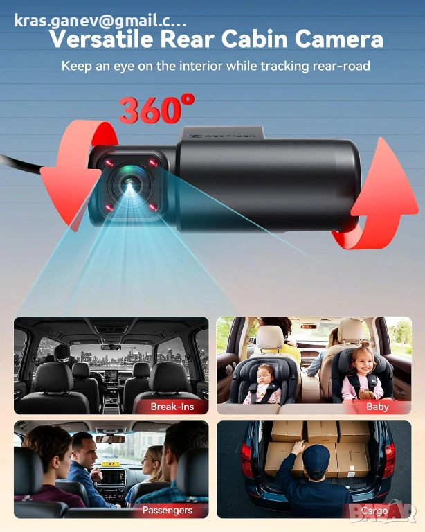 [360° въртяща се камера за задно виждане с два обектива] Тази подобрена видеорегистратор REDTIGER F17Plus разполага с камера за задно виждане с два обектива: единият заснема пътните условия зад превозното средство, а другият наблюдава интериора, което я прави идеална за семейства, шофьори и пътуващи. 360° въртящият се дизайн осигурява регулируеми ъгли за наблюдение на деца, домашни любимци или ценности вътре в превозното средство и дори открива опити за разбиване на страничните прозорци, докато заснема трафика зад превозното средство - за цялостно, гъвкаво покритие и повече безопасност.