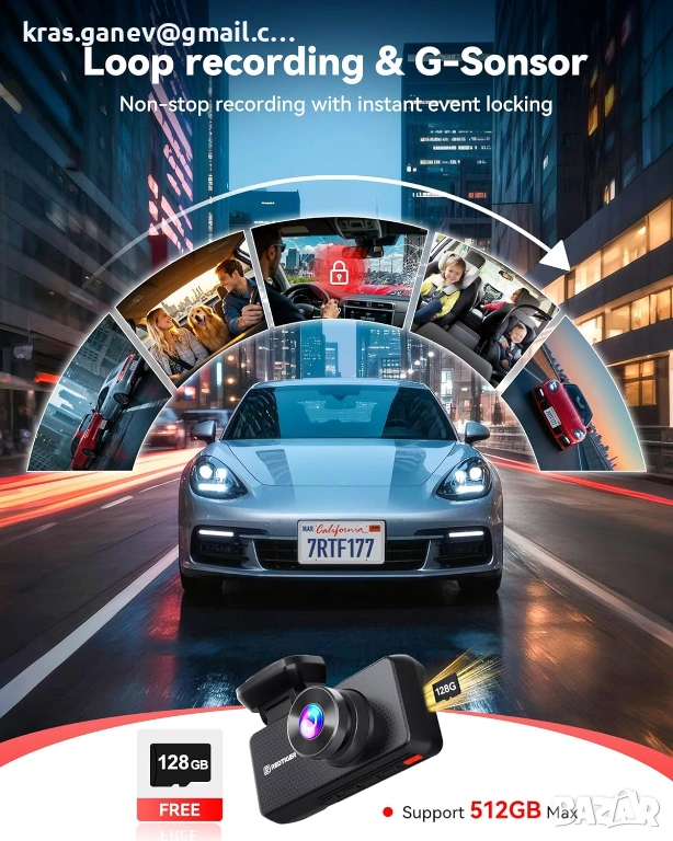 [Циклов запис] Видеорегистраторът REDTIGER F17Plus използва непрекъснат запис с ускорен кадър, за да спести място за съхранение. Когато е активиран непрекъснатият запис, новозаснетите кадри автоматично презаписват по-старите записи, след като картата с памет достигне капацитета си. Включва карта с памет от 128 GB за дълготрайна защита на автомобила и поддържа карти до 512 GB!