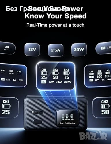 Троен заряден слот с 30W PD бързо зареждане през USB-C