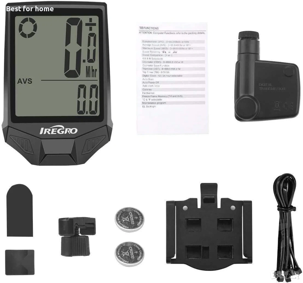 Iregro Велокомпютър - водоустойчив безжичен километраж - 18 функции
