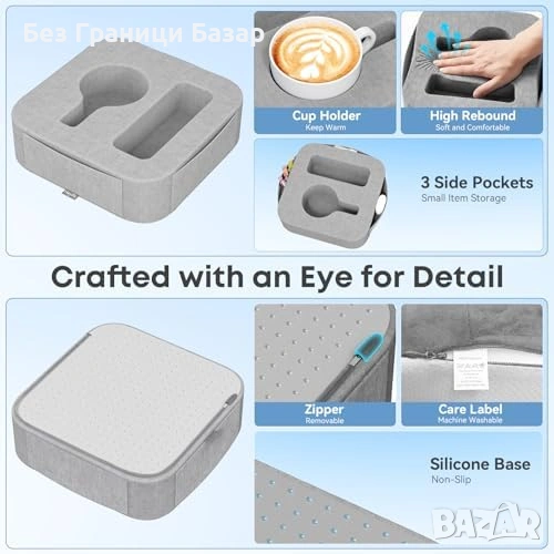 Практичен органайзер за подлакътник с поставка за напитки и закуски