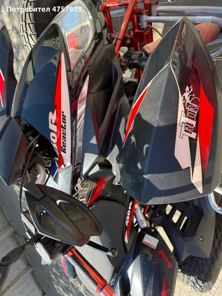 Предлагам АТВ с двигател разработка на Suzuki 450 в много добро състояние има задна скорост напълно обслужено , регистрирано в Кат София като четириколесно ПС, което позволява да се кара с В категория и не е нужна А категория за мотоциклет.