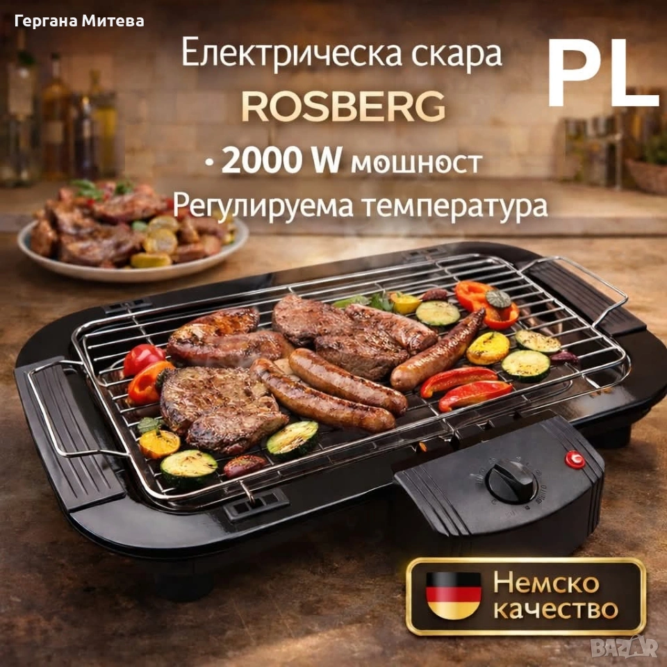 Скара Rosberg R51015G, 2000W Описание: Електрическата скара Rosberg R51015G е мощен и практичен кухненски уред, създаден за бързо и удобно приготвяне на разнообразни грил ястия. С мощност от 2000W и нагреватели от неръждаема стомана, уредът осигурява бързо загряване и равномерно изпичане на храната. Скарата разполага с 3 нива за монтаж на решетката, които позволяват различни режими на печене – бързо, нормално или поддържане на температурата. Благодарение на регулируемия термостат, можете да контролирате температурата в диапазон от 0 до 260°C, което я прави подходяща за приготвяне на месо, зеленчуци, риба и други грил специалитети. Уредът е оборудван със защита от прегряване, механичен контрол и светлинен индикатор за включване и изключване, които гарантират безопасност и удобство по време на работа. Демонтиращата се решетка за печене позволява лесно почистване и поддръжка, а компактният дизайн прави скарата подходяща за всяка кухня. Основни характеристики • Електрическа скара • Мощност: 2000W • Нагреватели от неръждаема стомана • 3 нива за монтаж на решетката ✔ Долно ниво – бързо печене ✔ Средно ниво – нормално печене ✔ Горно ниво – поддържане на температура • Регулиране на температурата: 0 – 260°C • Автоматичен контрол чрез термостат • Защита от прегряване • Механичен контрол • Светлинен индикатор за включване/изключване • Демонтираща се решетка за печене Размер на решетката: 38.5 x 22 см Размер на скарата: 48 x 29.4 x 5.5 см Захранване: 220-240V ~ 50/60Hz Цвят: Черен Тегло: 2.25 кг Пригответе вкусни грил ястия бързо и лесно със скара Rosberg R51015G. С мощност 2000W и регулируема температура до 260°C, тази електрическа скара осигурява перфектно изпичане на месо, риба, зеленчуци и други любими храни. ✔ Бързо загряване ✔ Равномерно печене ✔ Лесно почистване ✔ Компактен и практичен дизайн Идеалното решение за вкусни домашни грил специалитети. Състояние:Ново 2 години гаранция Доставка до 3-4 дни с преглед и тест