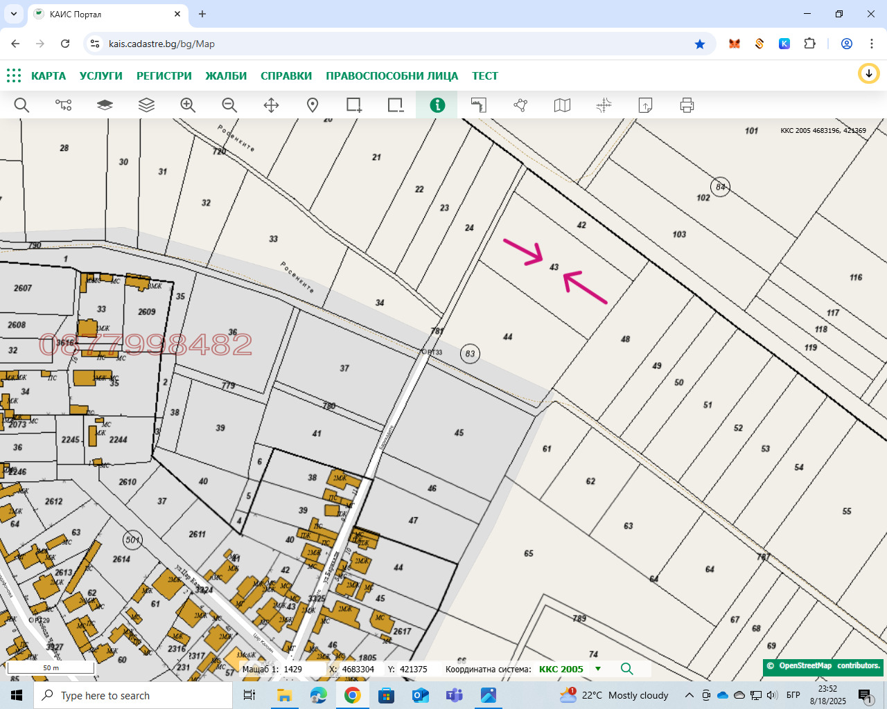 При интерес предлагаме още - 5дка имот в местност Доротлииски път, 13,500 дка имот в местност Геренски илач и 13,503 дка имот в местност Елътица в гр. Съединение с цена 16 евро/кв.м. Последната снимка е на 1/2 идеални части от имот нива трета категория 3,588 дка, пред регулация намираща се в местността Росенките на гр. Съединение. Имот с 083043 се намира зад последните къщи бивша градина, в посока при идване от Пловдив преди поликлиниката в дясно и напред на 200м., но не е в регулация. Наблизо има ток и вода. Равен имот с правилна форма с отлична локация излаз и изглед на път, подходящ за строеж на къща и други бизнес инвестиции. Цена 18 евро/кв.м.твърда цена без комисиона на брокер!