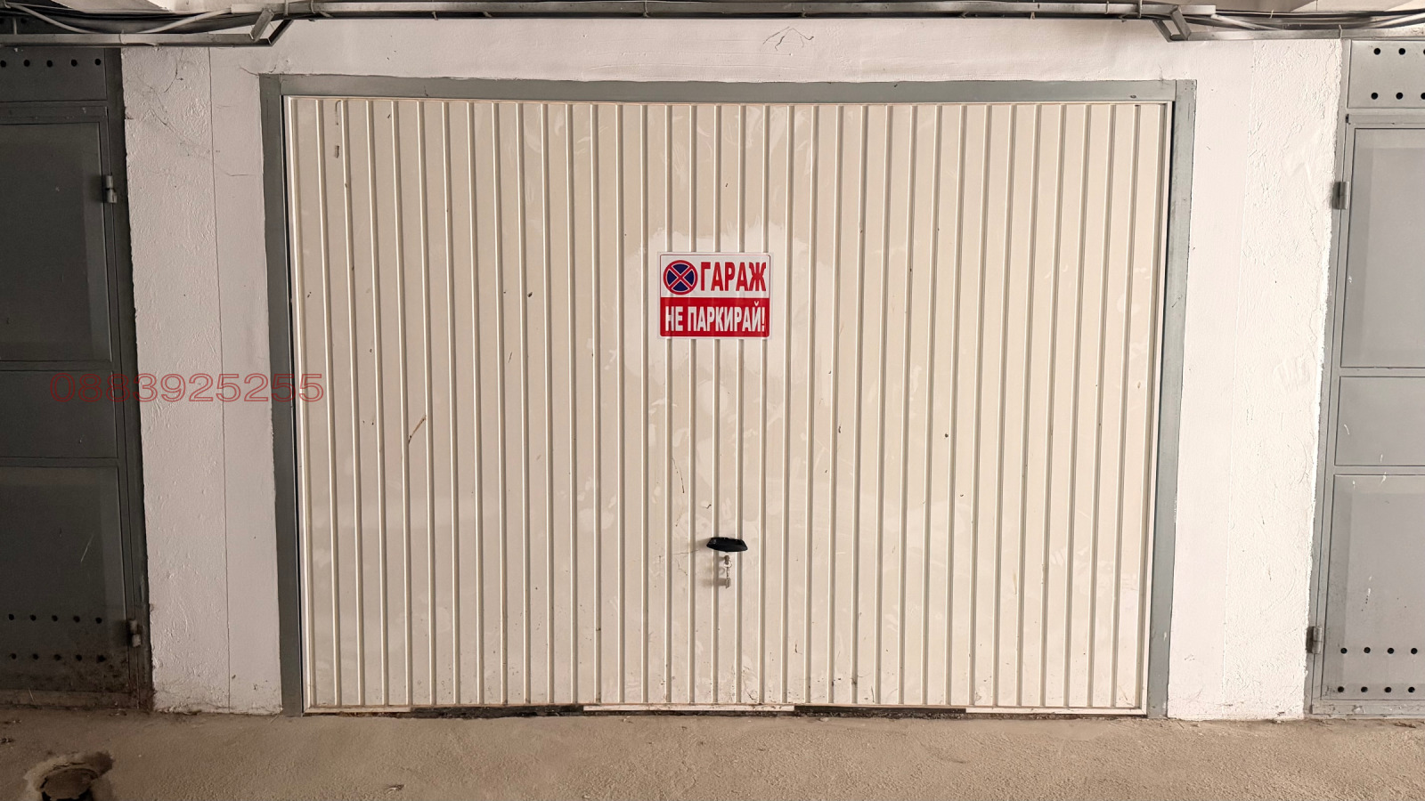 Подземен гараж, входна врата тип крило с ръчно отваряне, монофазен ток със самостоятелна партида, подходящо за зареждане на електрически автомобил до 3.5kW.За връзка, Viber/Whatsap