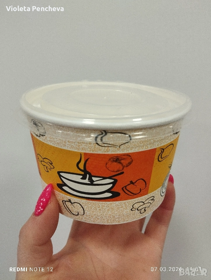 Картонена кутия за супа цветна 475мл. с капак → Обява 53746608