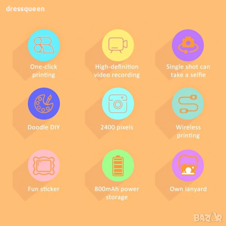 Свързаност: Bluetooth за връзка с телефон (чрез FUN PRINT) и поддръжка на TF карта до 32 GB за съхранение.