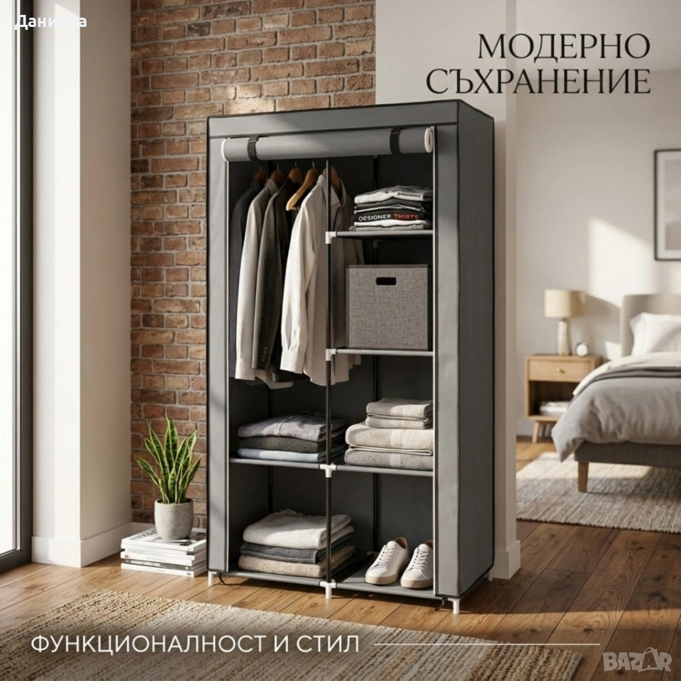 Размери: 87 x 43 x 166 см Материал: пластмаса, PE (полиетилен) покритие Цвят: сив Брой конектори: 28 бр. Комплект тръби: включени за монтаж Тип отваряне: ролкова платнена врата с цип Подходящ за: спалня, коридор, общежитие, временни решения при преместване