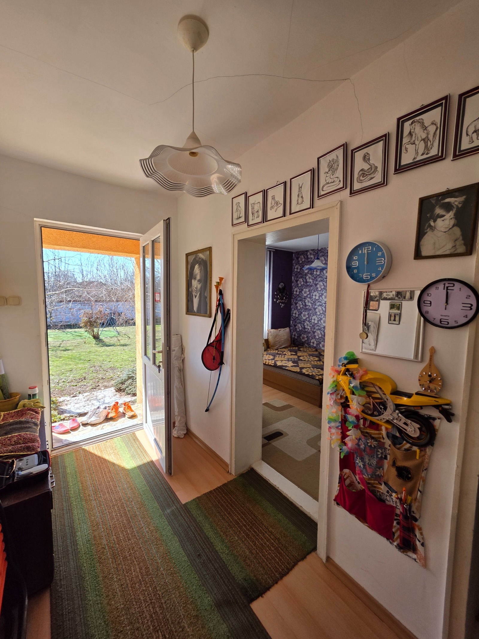Самата къща се състои от обзаведени спалня и всекидневна, както и напълно оборудвана кухня с шкафове,печка и хладилник. Банята е вътрешна и разполага с топла вода и тоалетна. Поставен е ламинат, сменена дограма и външна изолация.