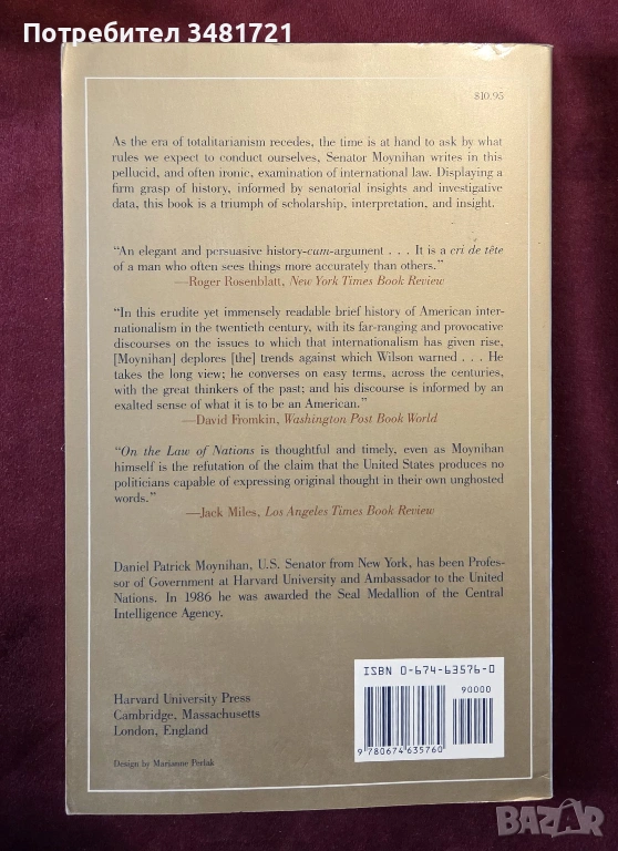 С отстъпването на ерата на тоталитаризма е време да се запитаме по какви правила очакваме да се държим, пише сенатор Даниел Патрик Мойнихан в този откровен и често ироничен анализ на международното право. Нашите бащи-основатели са разбирали твърдо важността и централното място на такова право, казва авторът, а по-късните президенти са го потвърдили и са се опитали да създадат международни институции, основани на такива високи принципи. Днешните американци, обаче, са се изгубили в мъглата на Студената война.