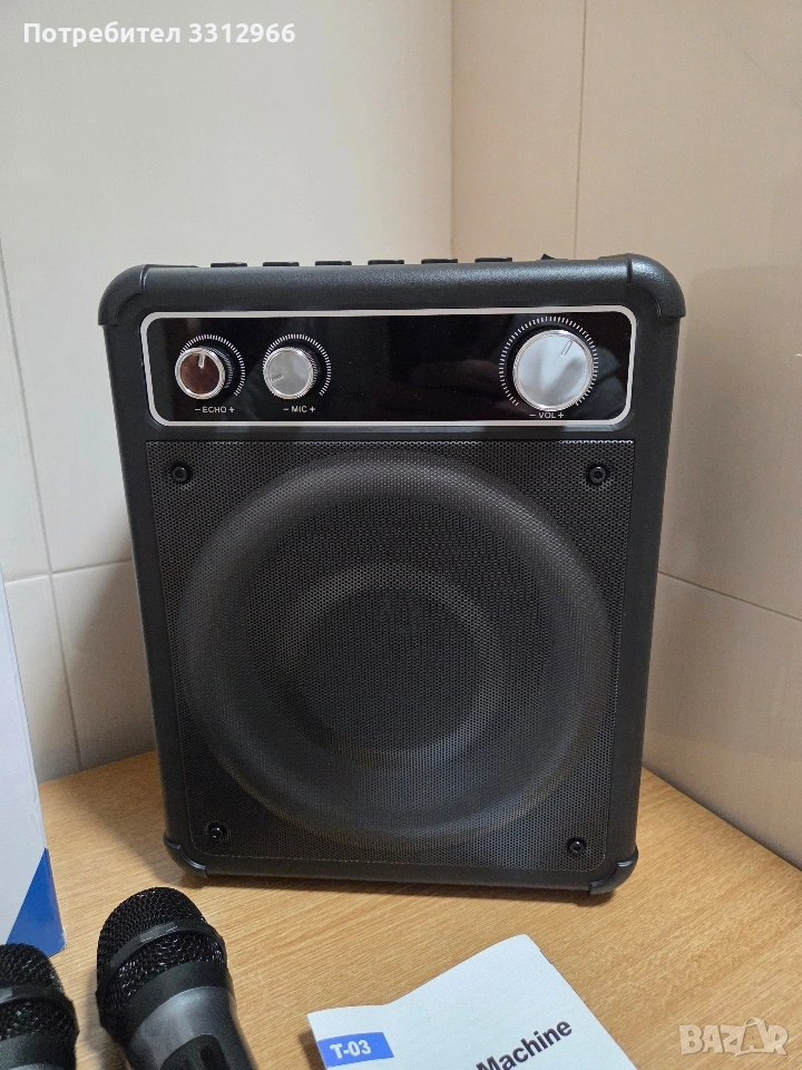 Чисто нова блутут караоке колонка Vosoco T-03 с два безжични микрофона.